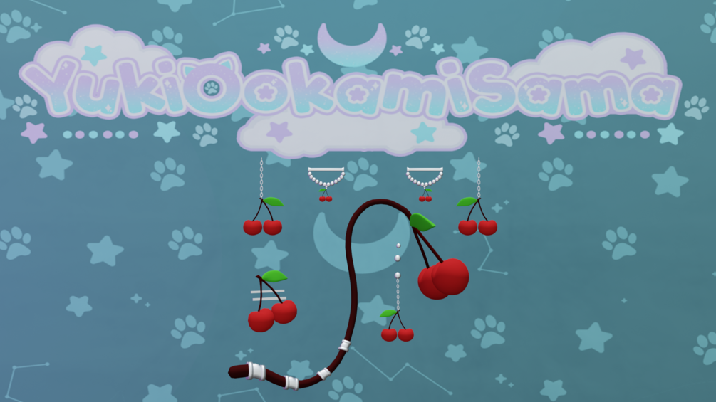 Cherry Set (Tail, Pin. Earrings, Nipple, and Belly Piercings)